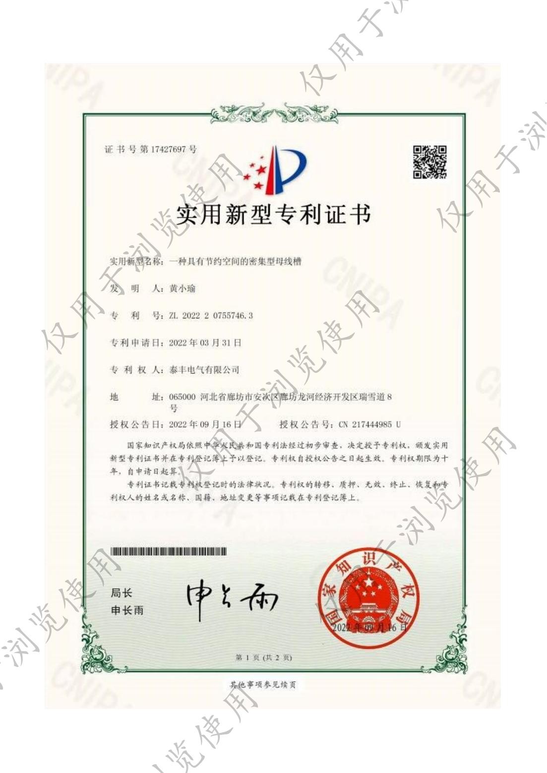 泰豐電氣有限公司-一種其有節(jié)約空間的密集型母線槽