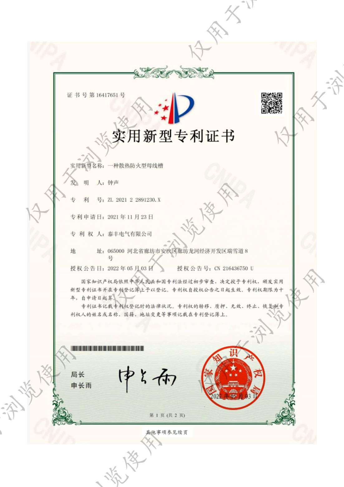 泰豐電氣有限公司-一種耐火母線槽