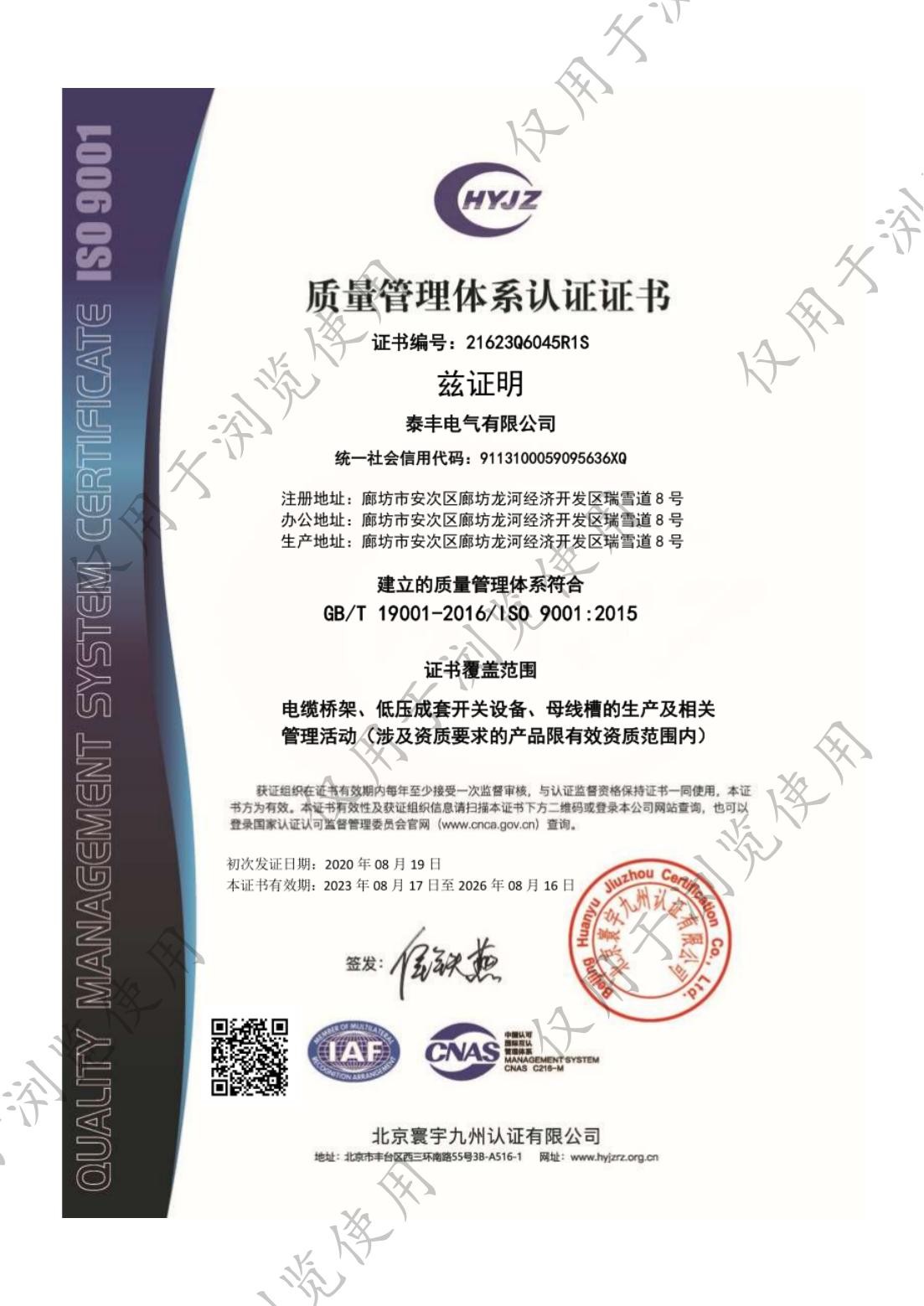 泰豐電氣有限公司-9001質(zhì)量認證