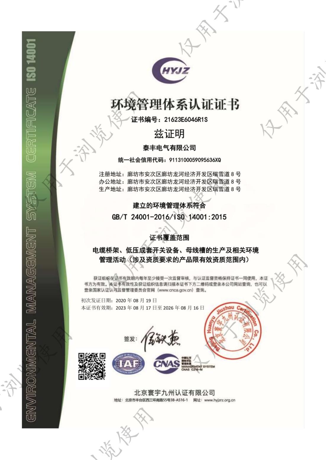 泰豐電氣有限公司-環(huán)境管理體系認證書