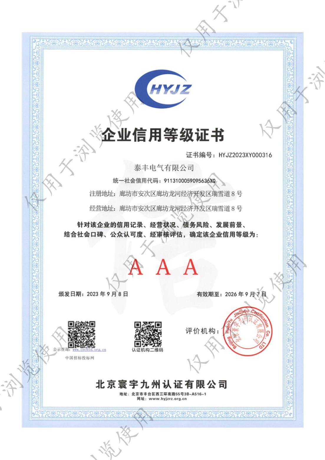 泰豐電氣有限公司-企業(yè)資信等級證書