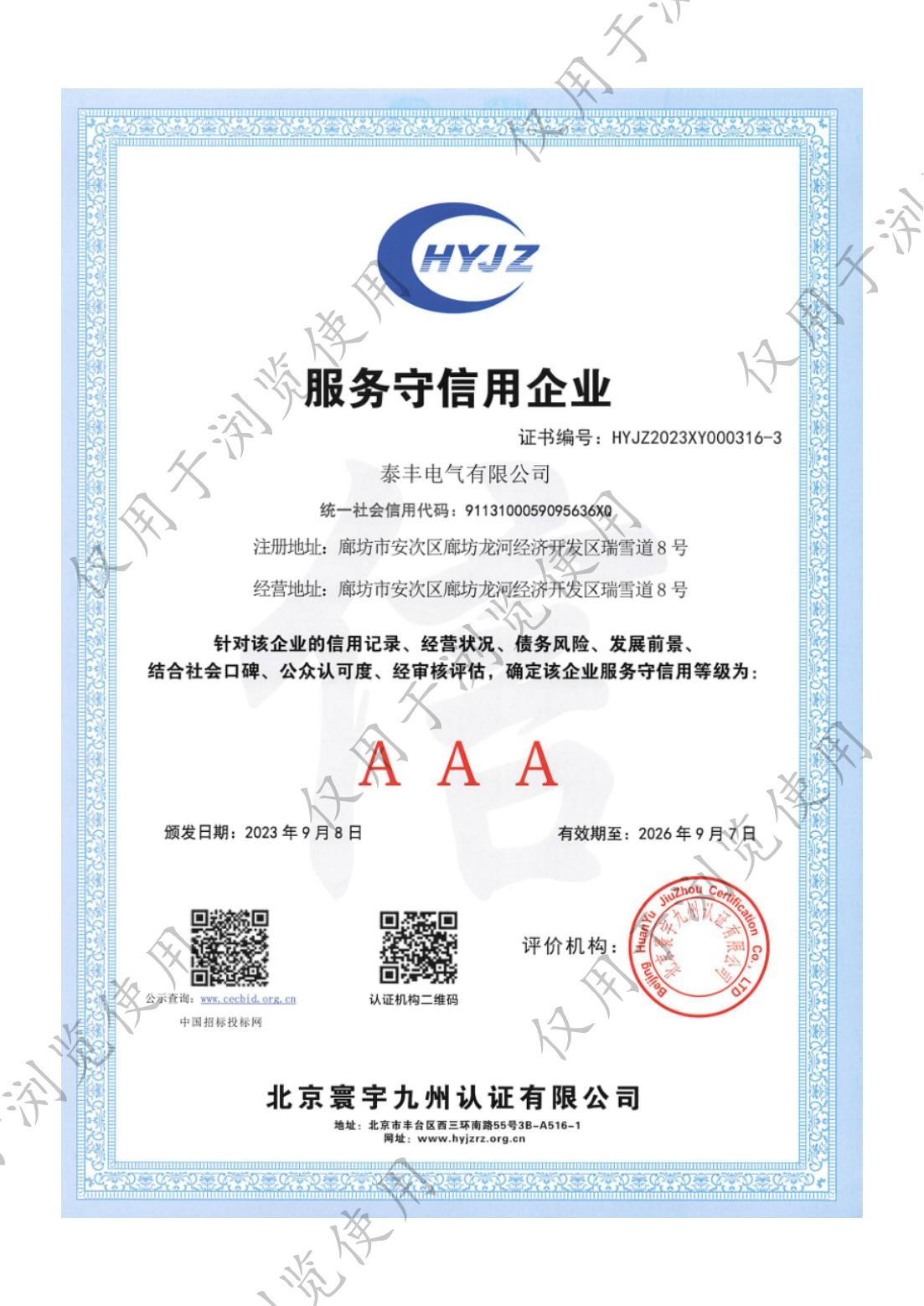 泰豐電氣有限公司-服務守信用企業(yè)