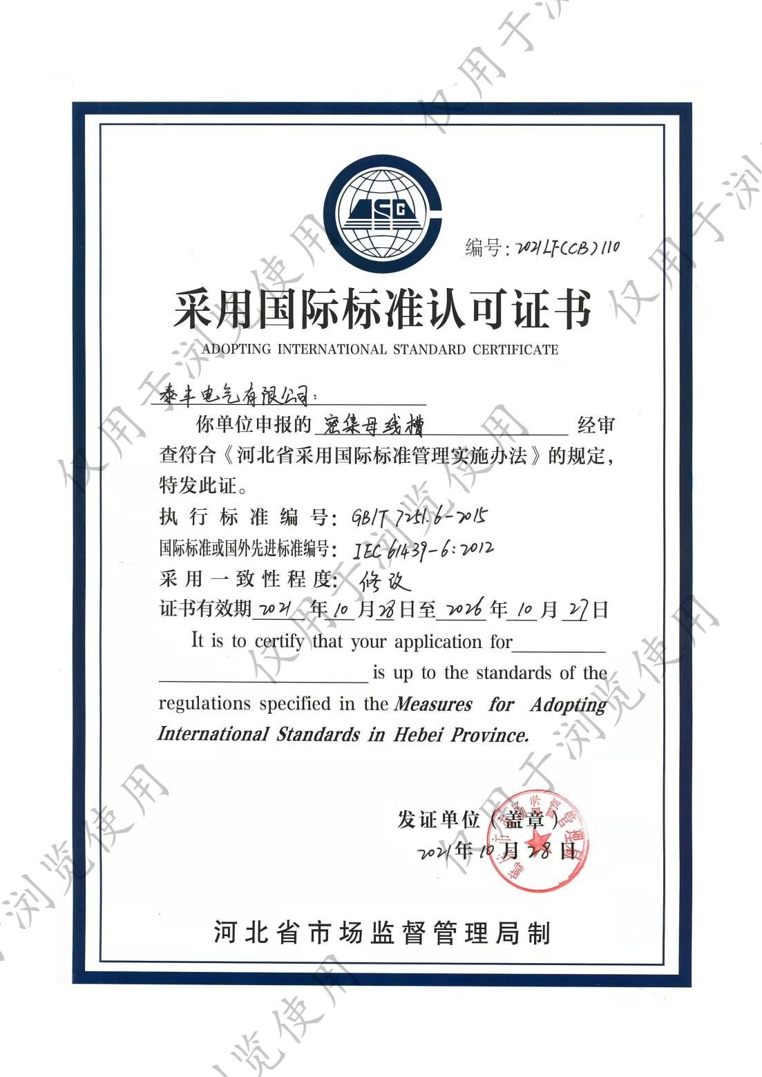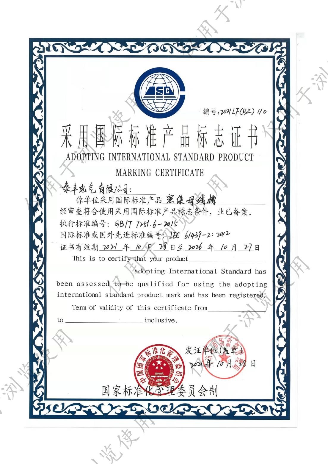 泰豐電氣有限公司-國際標準標志證書